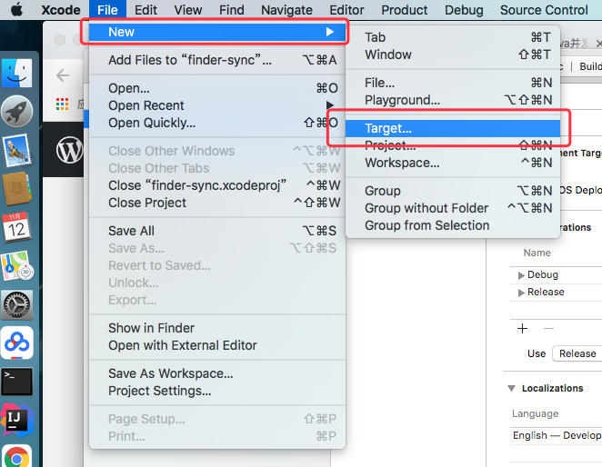 实际上新的Project里面到底有什么并不重要,接下来需要在这个Project上面添加一个“Target”,这个Target才是Finder extension的本体。