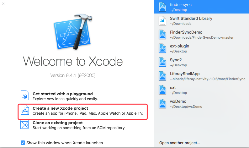 如图选择新建的“ FinderExtension ” 然后点击启动按钮,接下来会看到XCode要求你选择一个应用来启动。