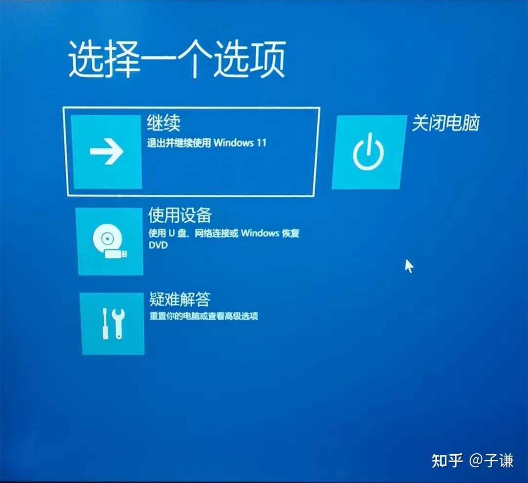 不知道为啥,在那台设备上,第一种方法没有起效,因此我们通过强制让系统启动失败的方法进入了WinRE界面,具体的做法是这样的: