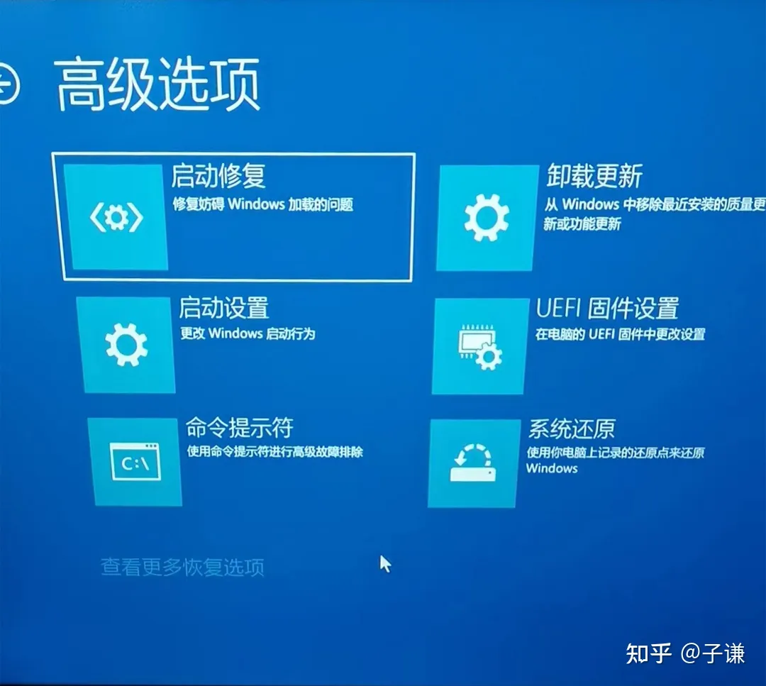 当然,这么做的目的就是为了这里的“高级选项”了,点击高级选项,就能够进入WinRE了,此时界面应该如下图所示: