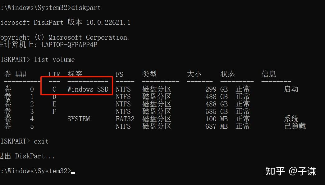 LTR这一列就是盘符了,这里可以看出来,Windows在目前的环境里面,它的盘符是C。