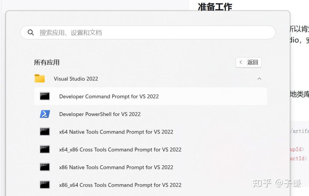 找到开始菜单的Developer Command Prompt附近的x64 Native Tools Command Prompt for VS 2022,注意,不是那个“Developer Command Prompt”。