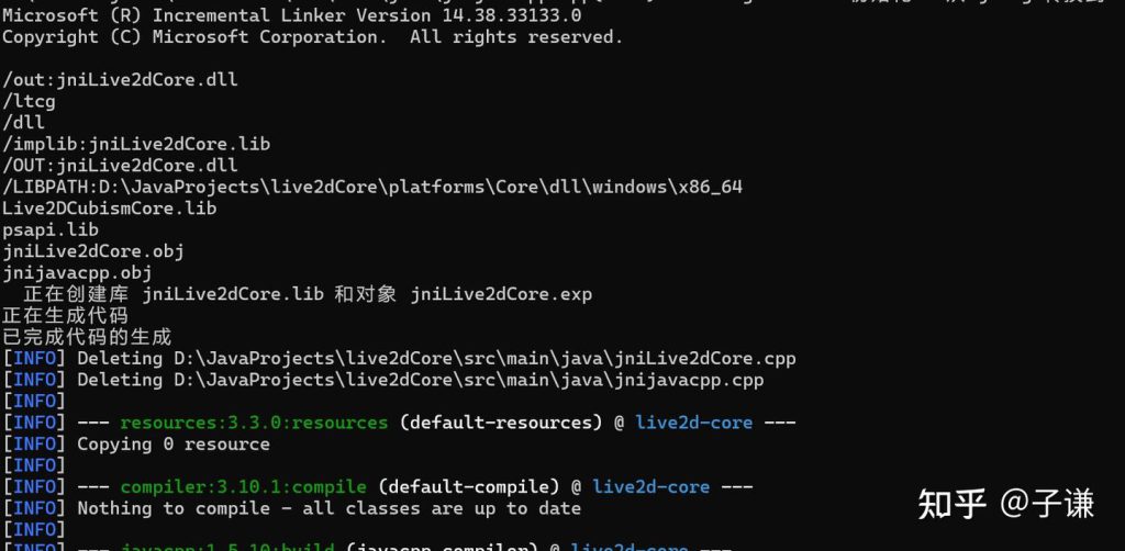 在这个命令行窗口中进入项目的目录,然后执行mvn package即可,注意,如果刚刚执行过Maven的Clean,或者首次执行package,那么此时应当执行两次Package指令,第一次执行JavaCPP有可能无法找到他需要的Class,如果一切顺利,那么此时一个包含本地类库的JNI包就会出现在target里面: